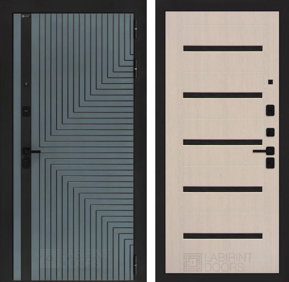 Входная дверь CREDOR 01 - Беленый дуб, стекло черное