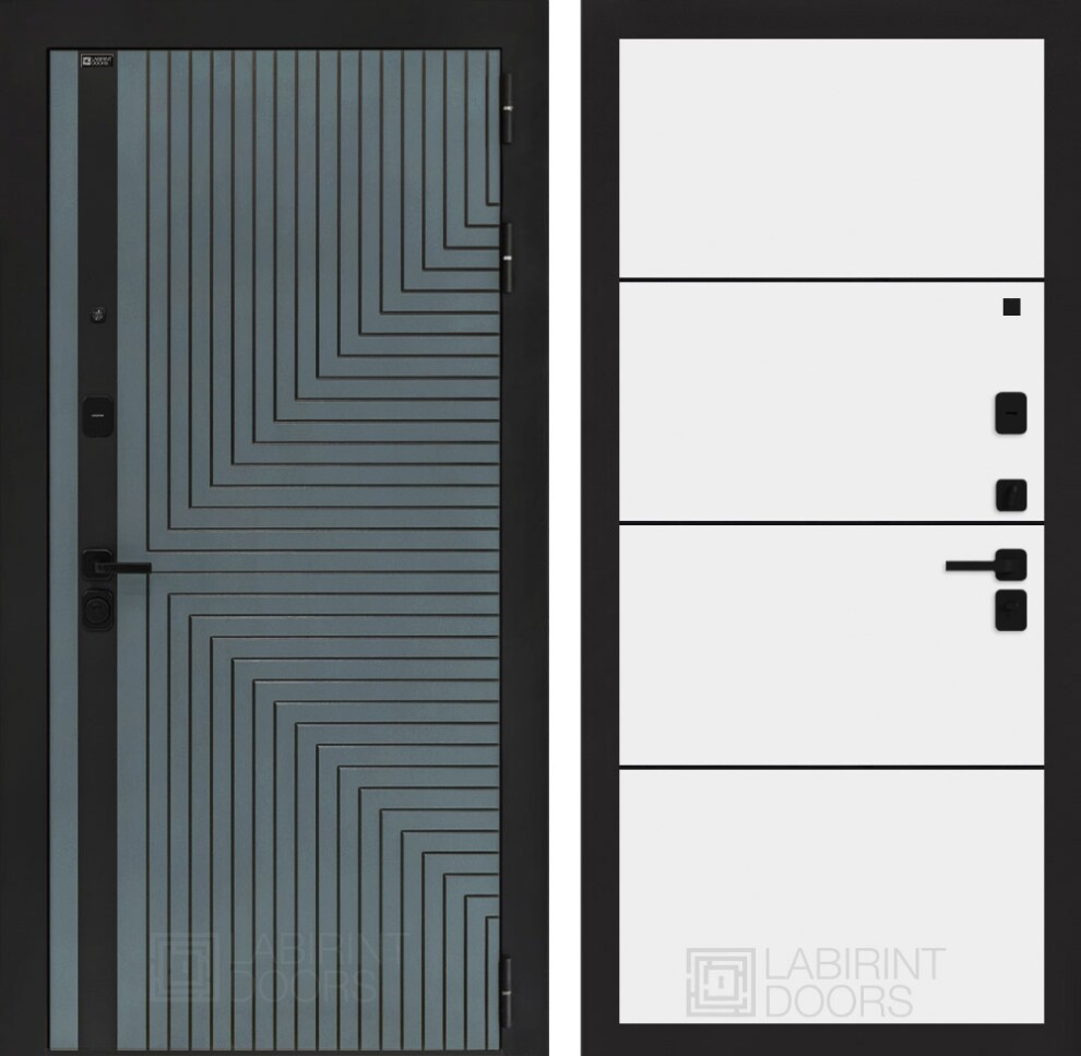 Входная дверь Кредор 25 - Белый софт, черный молдинг