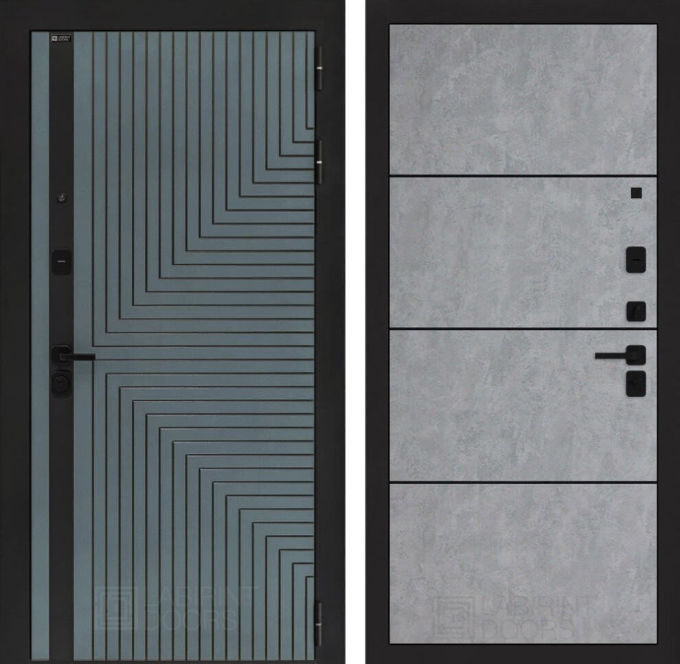 Входная дверь CREDOR 25 - Бетон светлый, черный молдинг