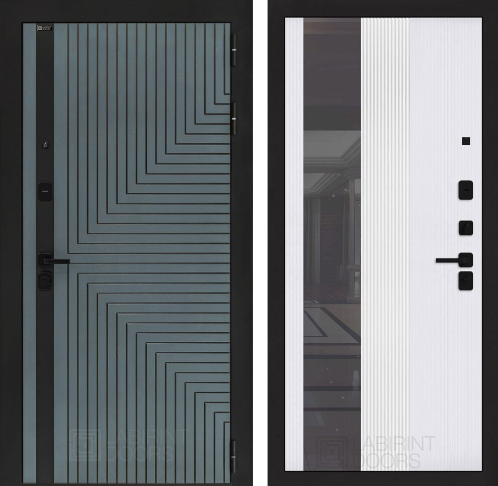 Входная дверь CREDOR с Зеркалом 32 тонированным - Белый рельеф софт