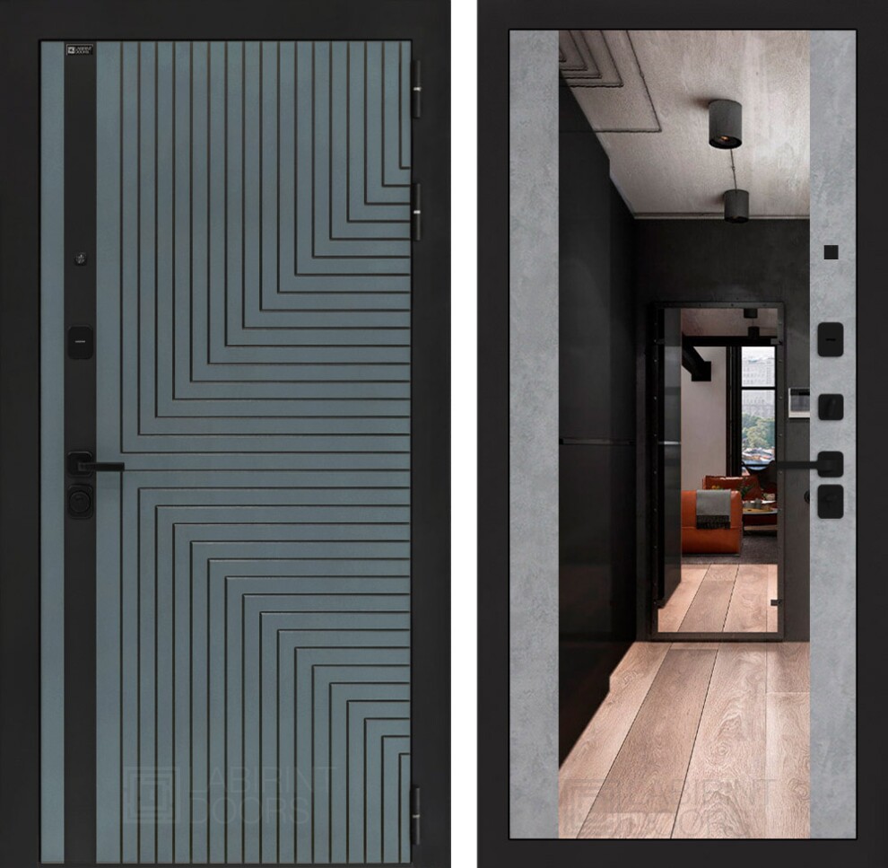 Входная дверь CREDOR с Зеркалом Максимум - Бетон светлый