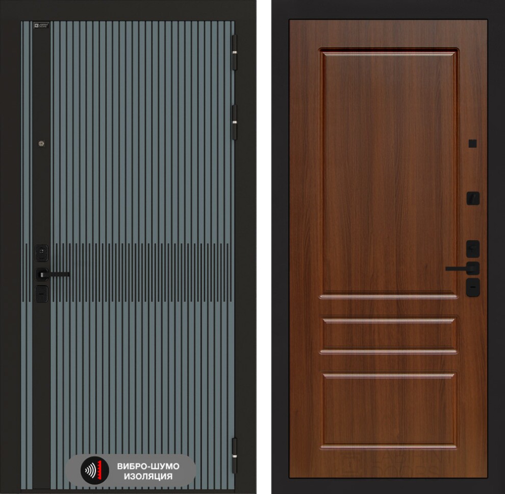 - Фрезерованная МДФ панель 10 мм, цвет "Velutto Verde" с патиной и вставкой из металла в цвет наличника, Фрезерованная МДФ панель 10 мм, цвет "Орех американский" с патиной и вставками из металла в цвет наличника