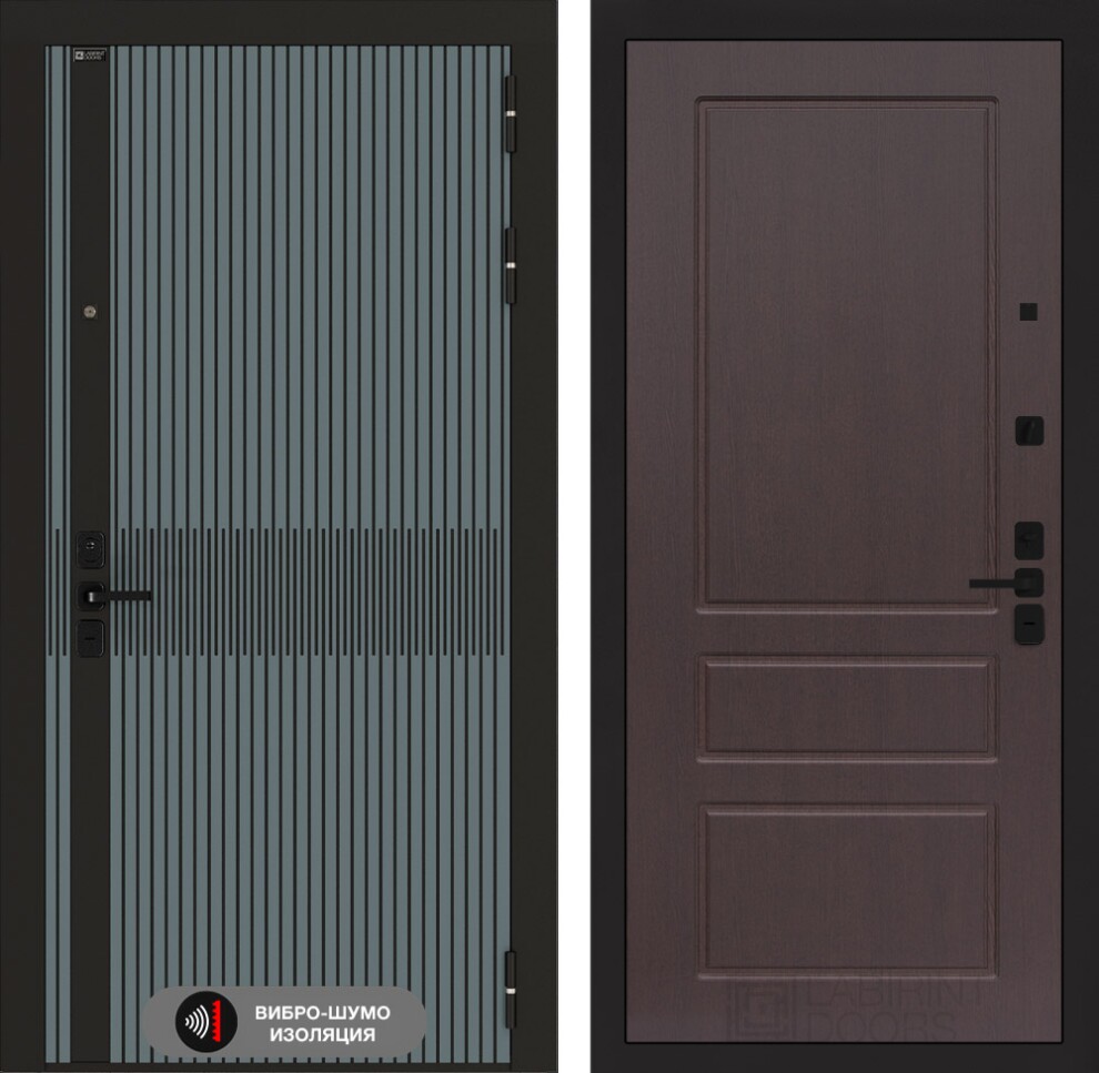 - Фурнитура в черном цвете: Броненакладка врезная, накладка со шторкой, глазок , дверная ручка, ночная задвижка. Цилиндр ключ-вертушка (производитель не регламентируется), регулируемый эксцентрик.