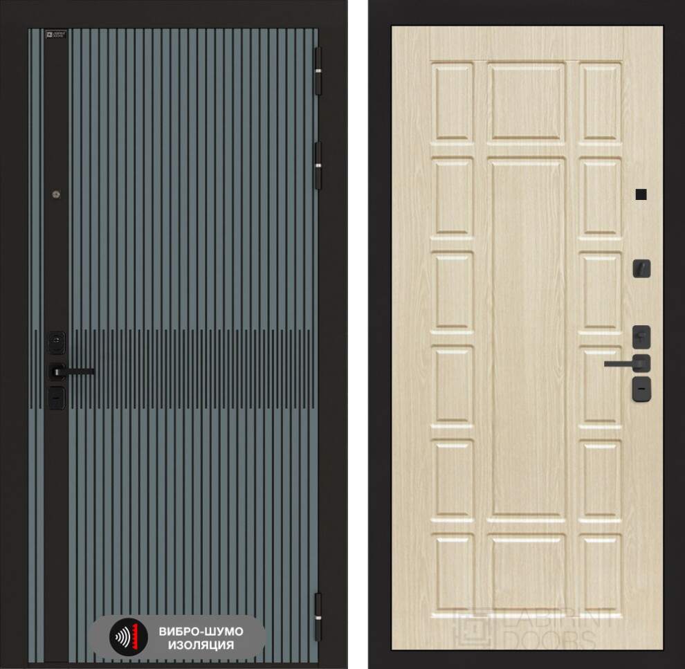 - Фурнитура в черном цвете: Броненакладка врезная, накладка со шторкой, глазок , дверная ручка, ночная задвижка. Цилиндр ключ-вертушка (производитель не регламентируется), регулируемый эксцентрик.