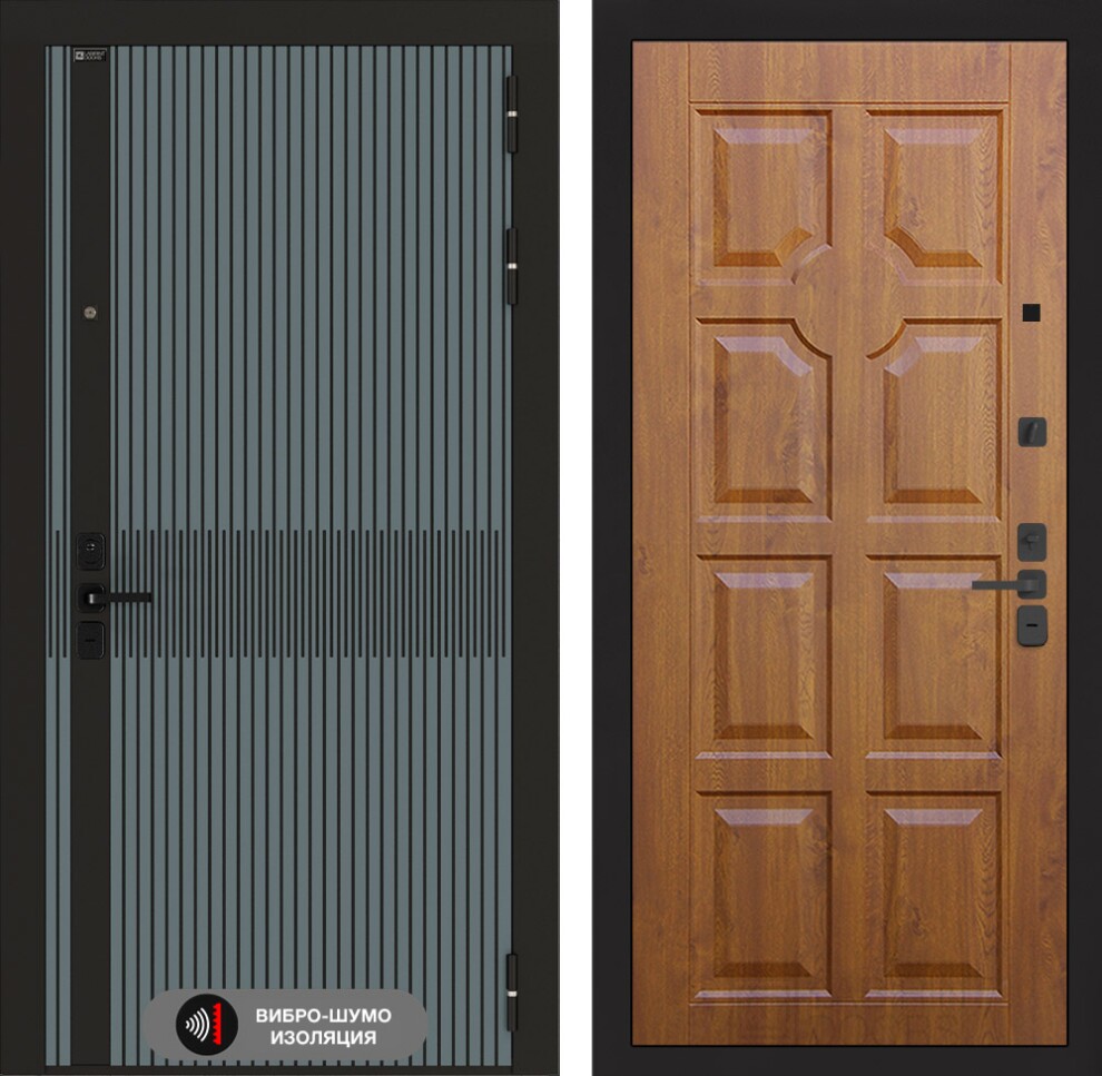 - Фурнитура в черном цвете: Броненакладка врезная, накладка со шторкой, глазок , дверная ручка, ночная задвижка. Цилиндр ключ-вертушка (производитель не регламентируется), регулируемый эксцентрик.