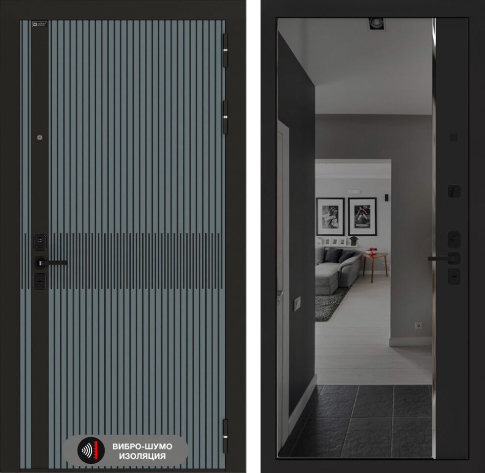Входная дверь ISSIDA с зеркалом Панорама с тонировкой - Черный кварц