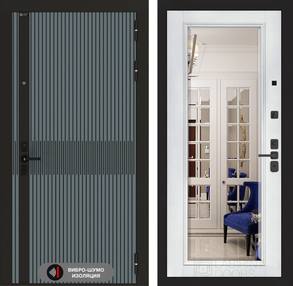 Входная дверь ISSIDA с Зеркалом Фацет - Белый софт