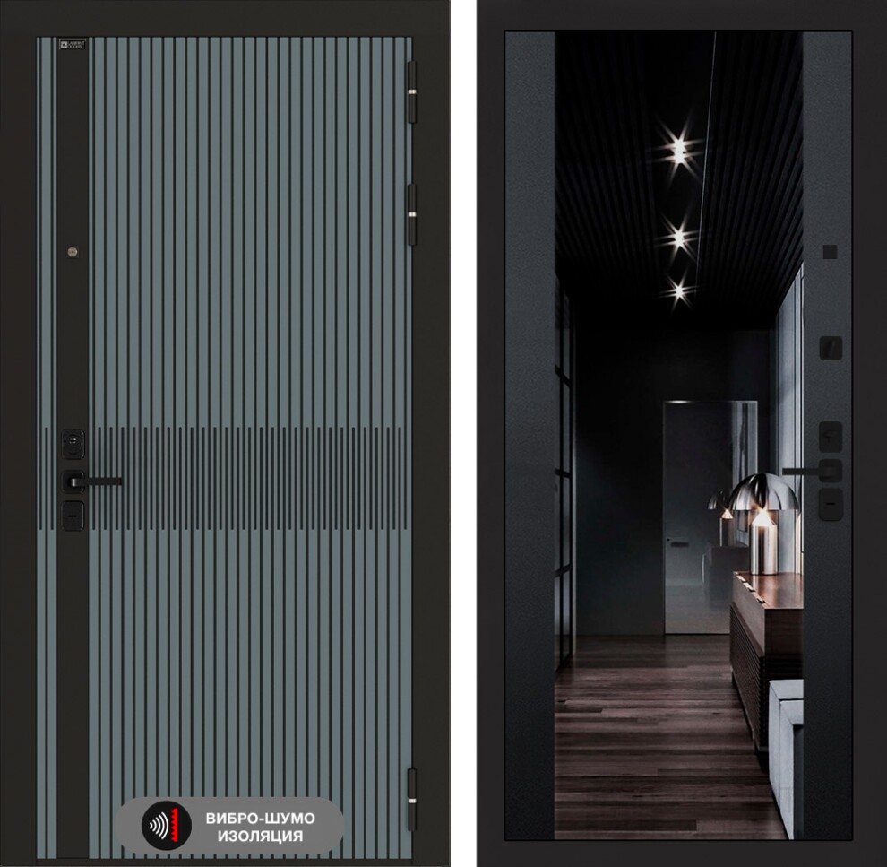 Входная дверь ISSIDA с Зеркалом тонированным Максимум - Черный кварц
