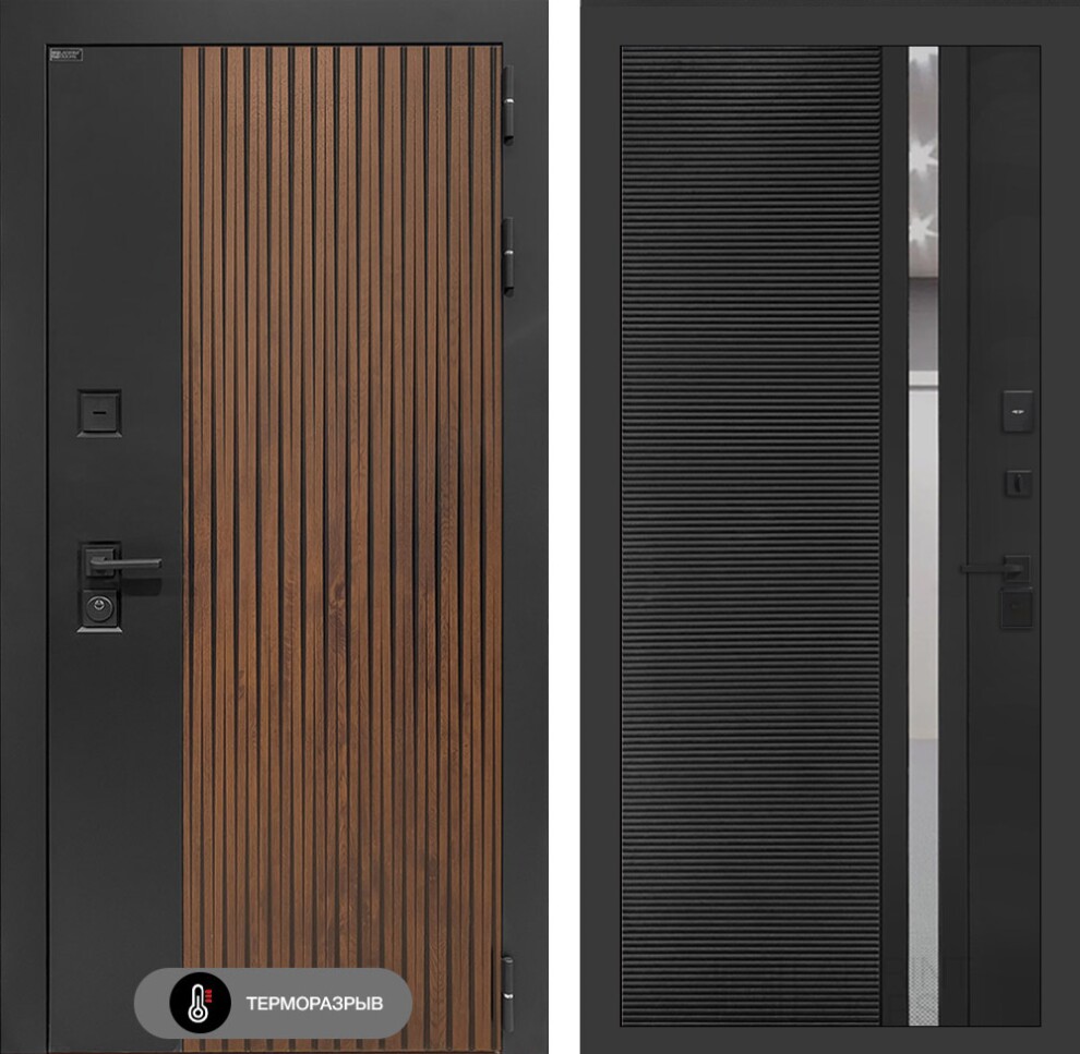 Входная дверь Айслаб 31 - Черный кварц, зеркальная вставка с тонировкой