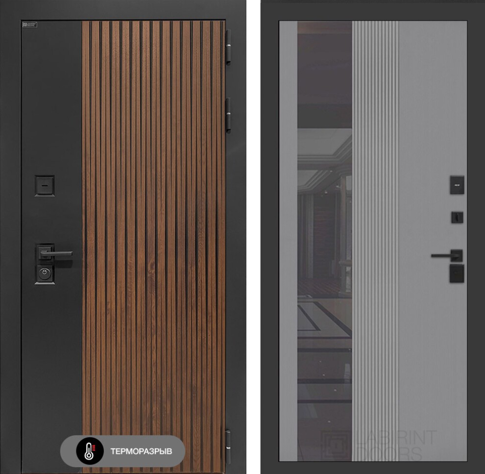 Входная дверь Айслаб с Зеркалом 32 тонированным - Серый рельеф софт