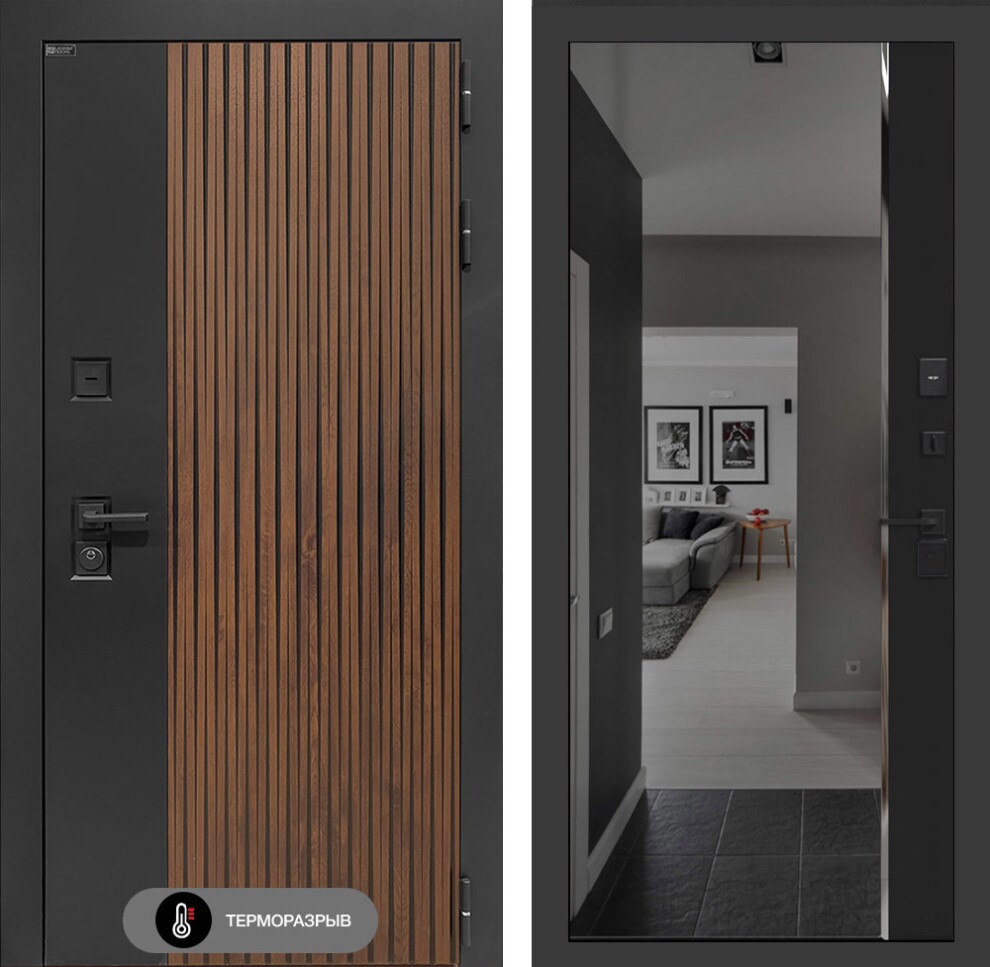 Входная дверь Айслаб с зеркалом Панорама с тонировкой - Черный кварц