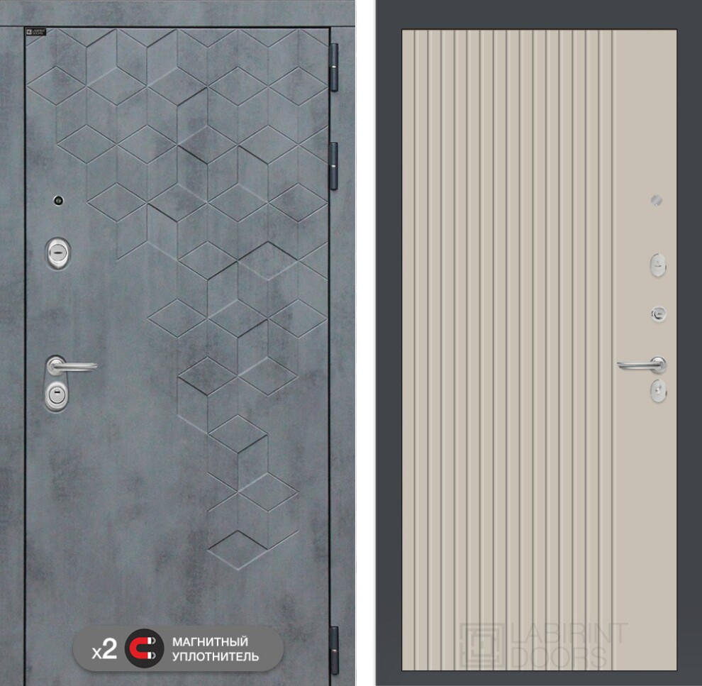 - Броненакладка врезная, накладка со шторкой, глазок , дверная ручка, ночная задвижка, цилиндр ключ-вертушка (производитель не регламентируется), регулируемый эксцентрик.