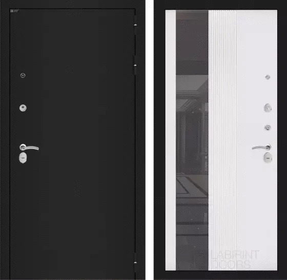 Входная дверь Классик шагрень черная с Зеркалом 32 тонированным - Белый рельеф софт