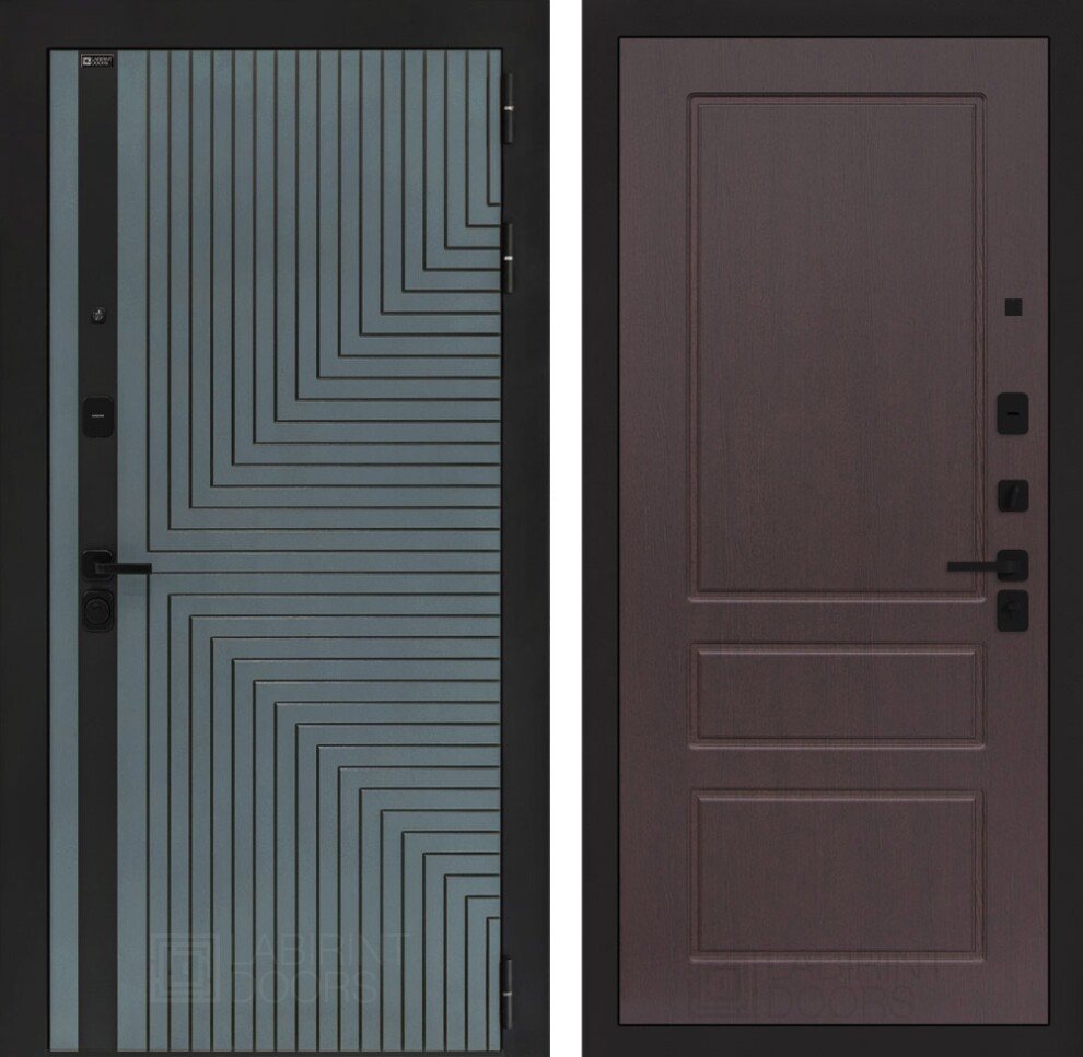 - Фурнитура в черном цвете: Броненакладка врезная, накладка со шторкой, глазок , дверная ручка, ночная задвижка. Цилиндр ключ-вертушка (производитель не регламентируется), регулируемый эксцентрик.