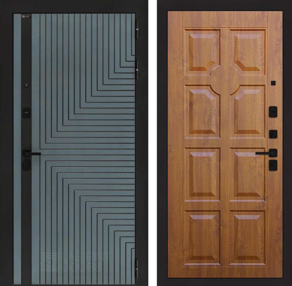 - Фурнитура в черном цвете: Броненакладка врезная, накладка со шторкой, глазок , дверная ручка, ночная задвижка. Цилиндр ключ-вертушка (производитель не регламентируется), регулируемый эксцентрик.