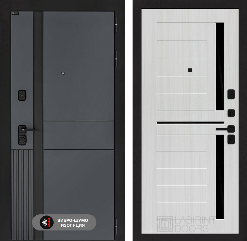 Входная дверь EVOLAB 02 - Сандал белый, стекло черное