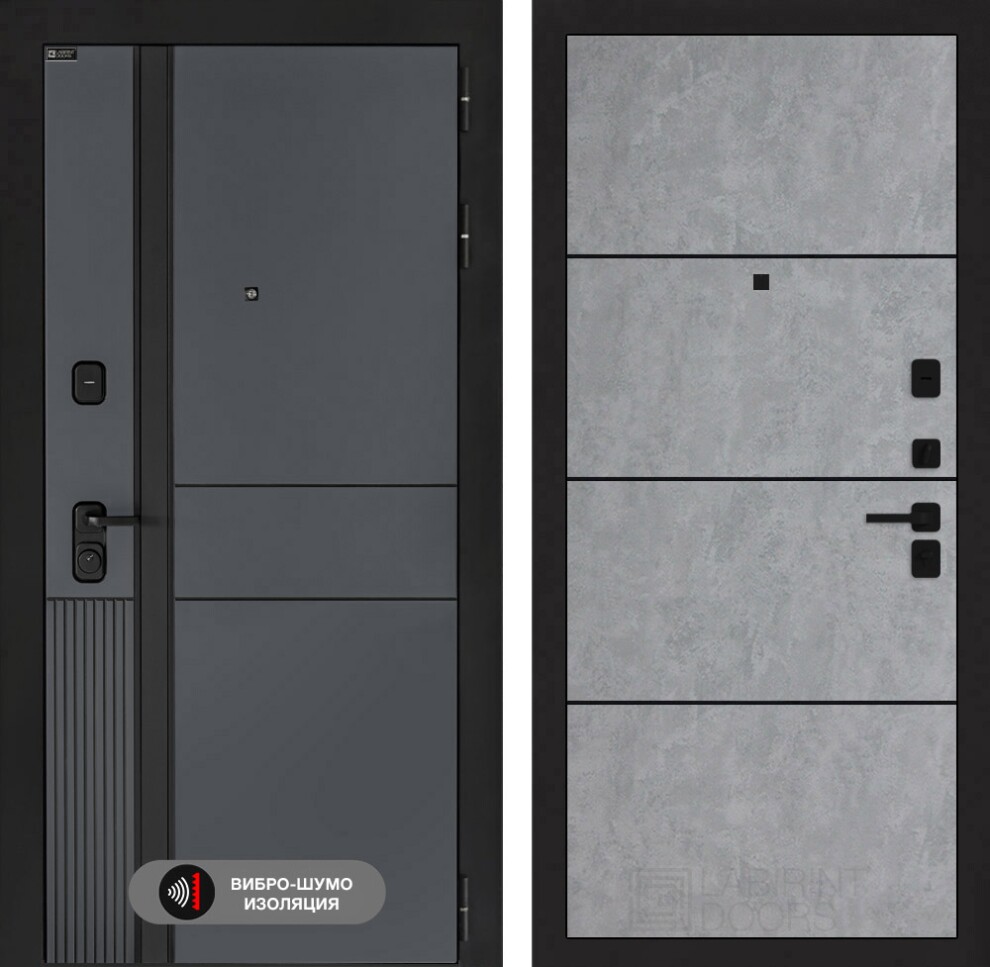 Входная дверь EVOLAB 25 - Бетон светлый, черный молдинг