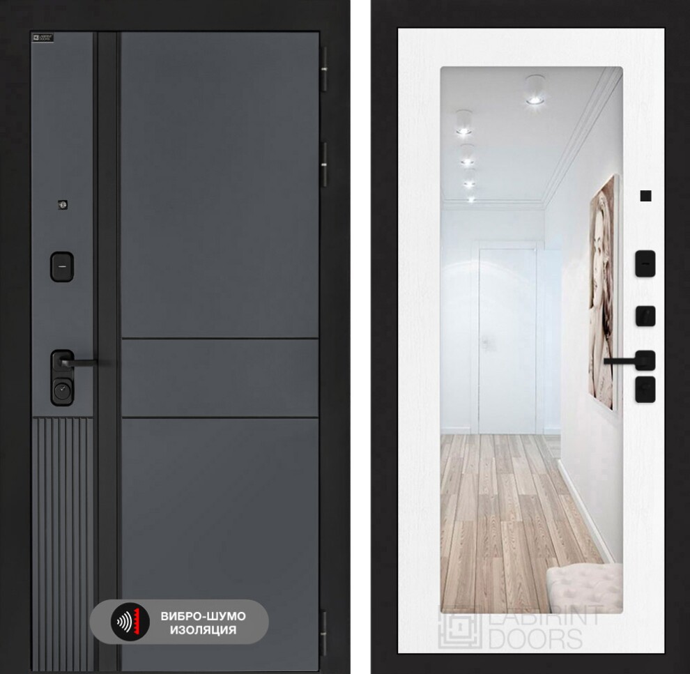 Входная дверь EVOLAB с Зеркалом 18 - Белое дерево