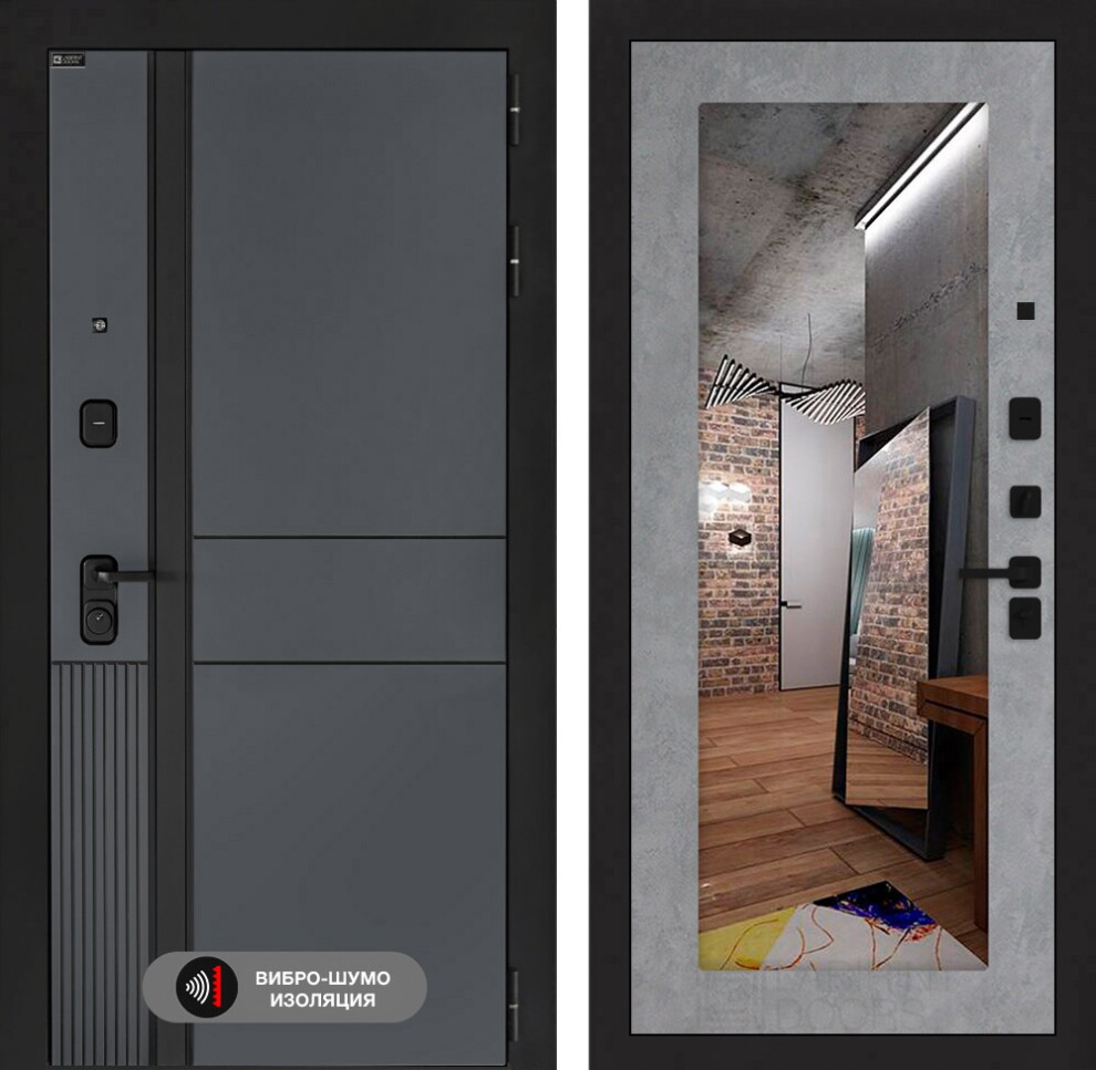 Входная дверь EVOLAB с Зеркалом 18 - Бетон светлый