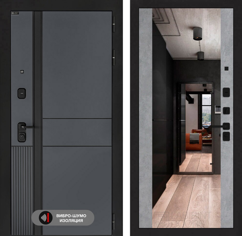 Входная дверь EVOLAB с Зеркалом Максимум - Бетон светлый