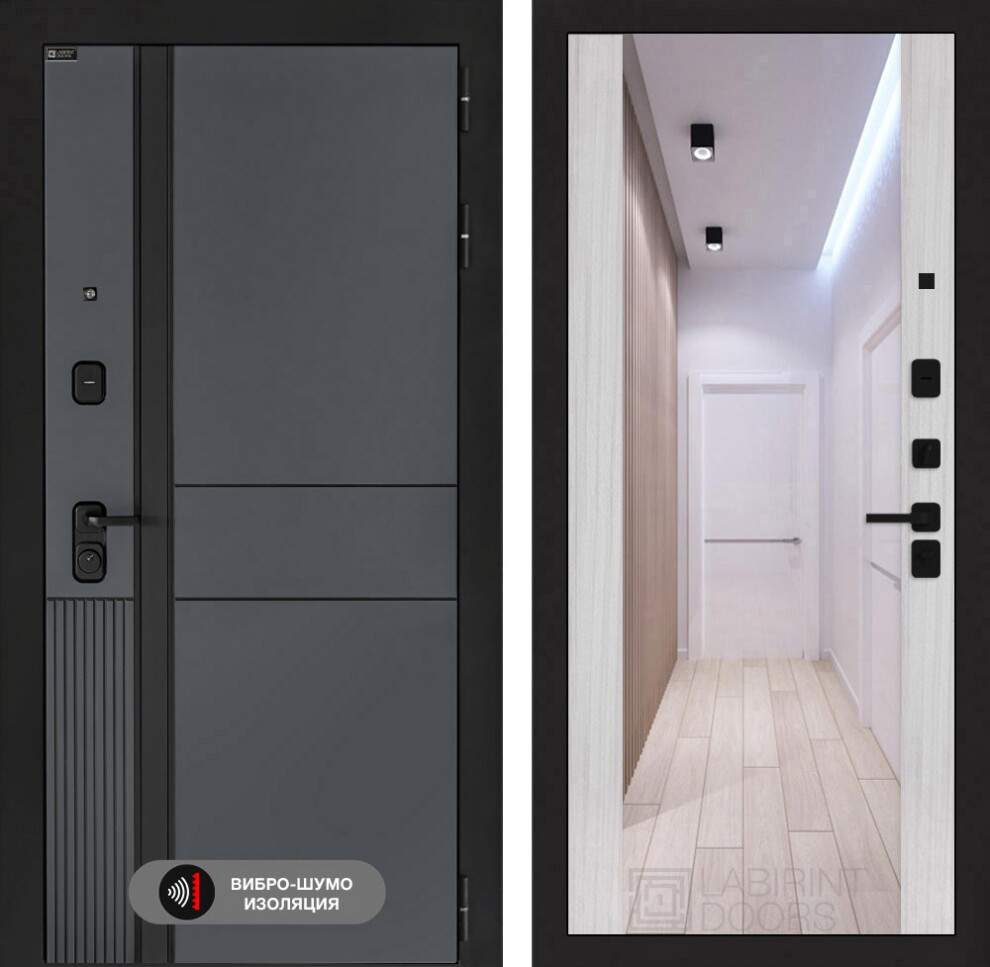 Входная дверь EVOLAB с Зеркалом Максимум - Сандал белый