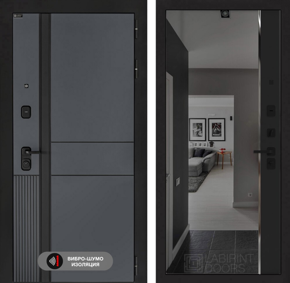 Входная дверь EVOLAB с зеркалом Панорама с тонировкой - Черный кварц