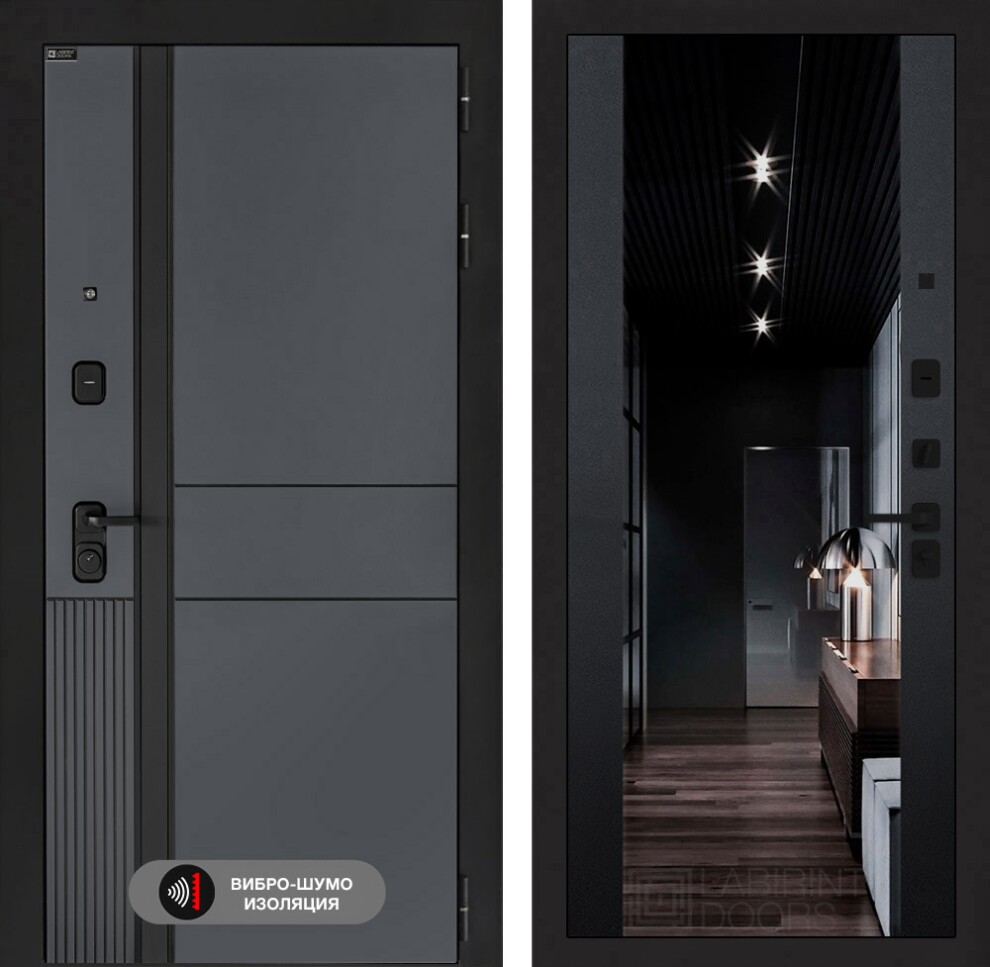 Входная дверь EVOLAB с зеркалом тонированным Максимум - Черный кварц