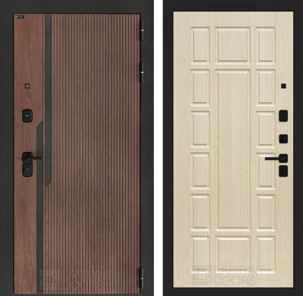- Фурнитура в черном цвете: Броненакладка врезная, накладка со шторкой, глазок , дверная ручка, ночная задвижка. Цилиндр ключ-вертушка (производитель не регламентируется), регулируемый эксцентрик.