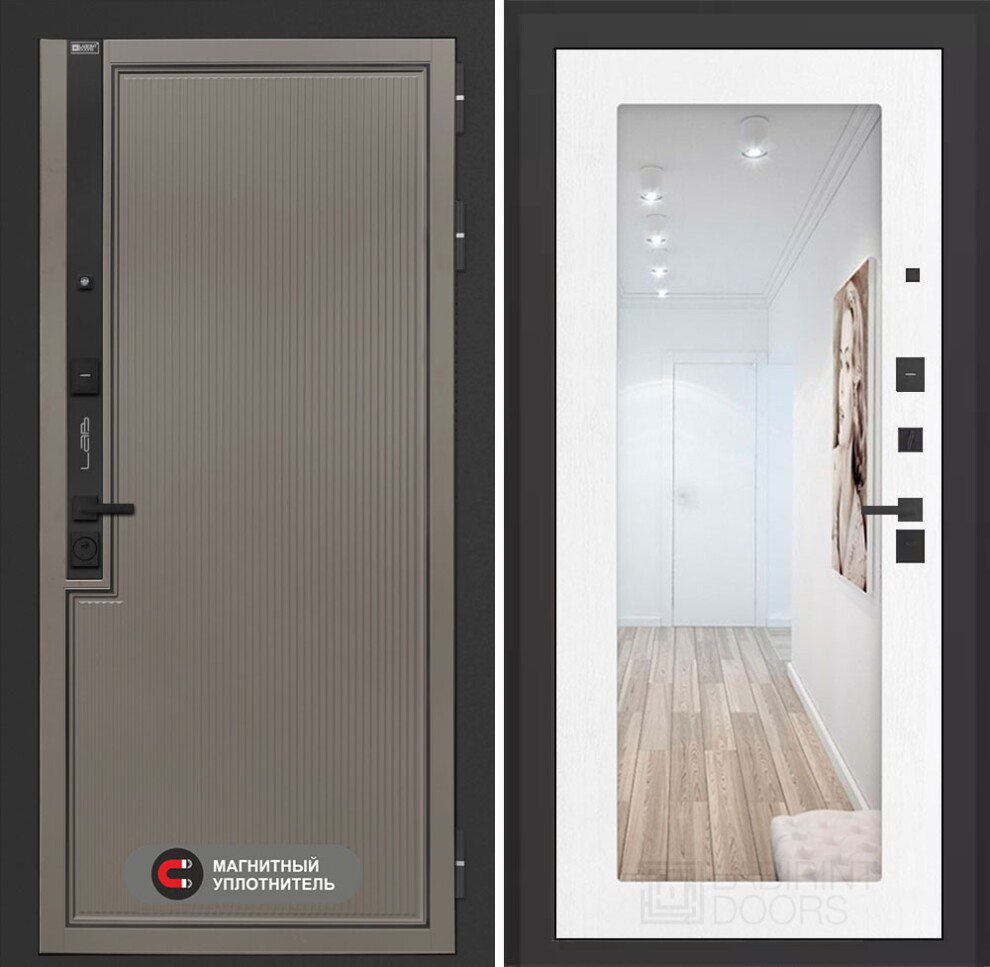 Входная дверь Лаб 1 Про с зеркалом 18 - Белое дерево