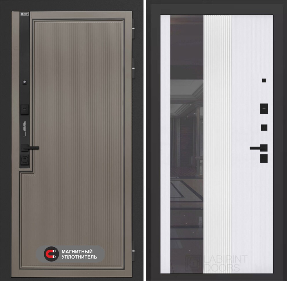 Входная дверь Лаб 1 Про с Зеркалом 32 тонированным - Белый рельеф софт
