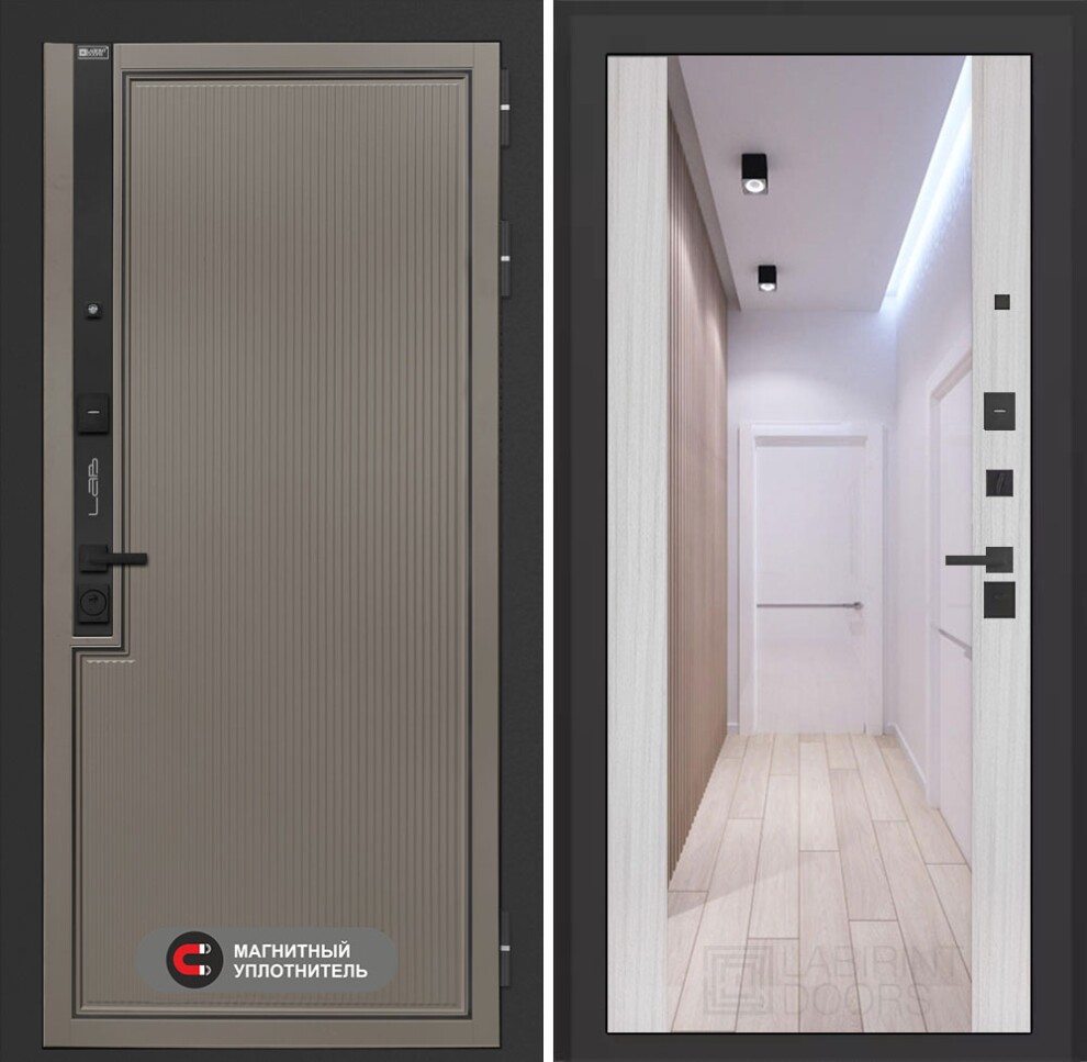 Входная дверь Лаб 1 Про с зеркалом Максимум - Сандал белый