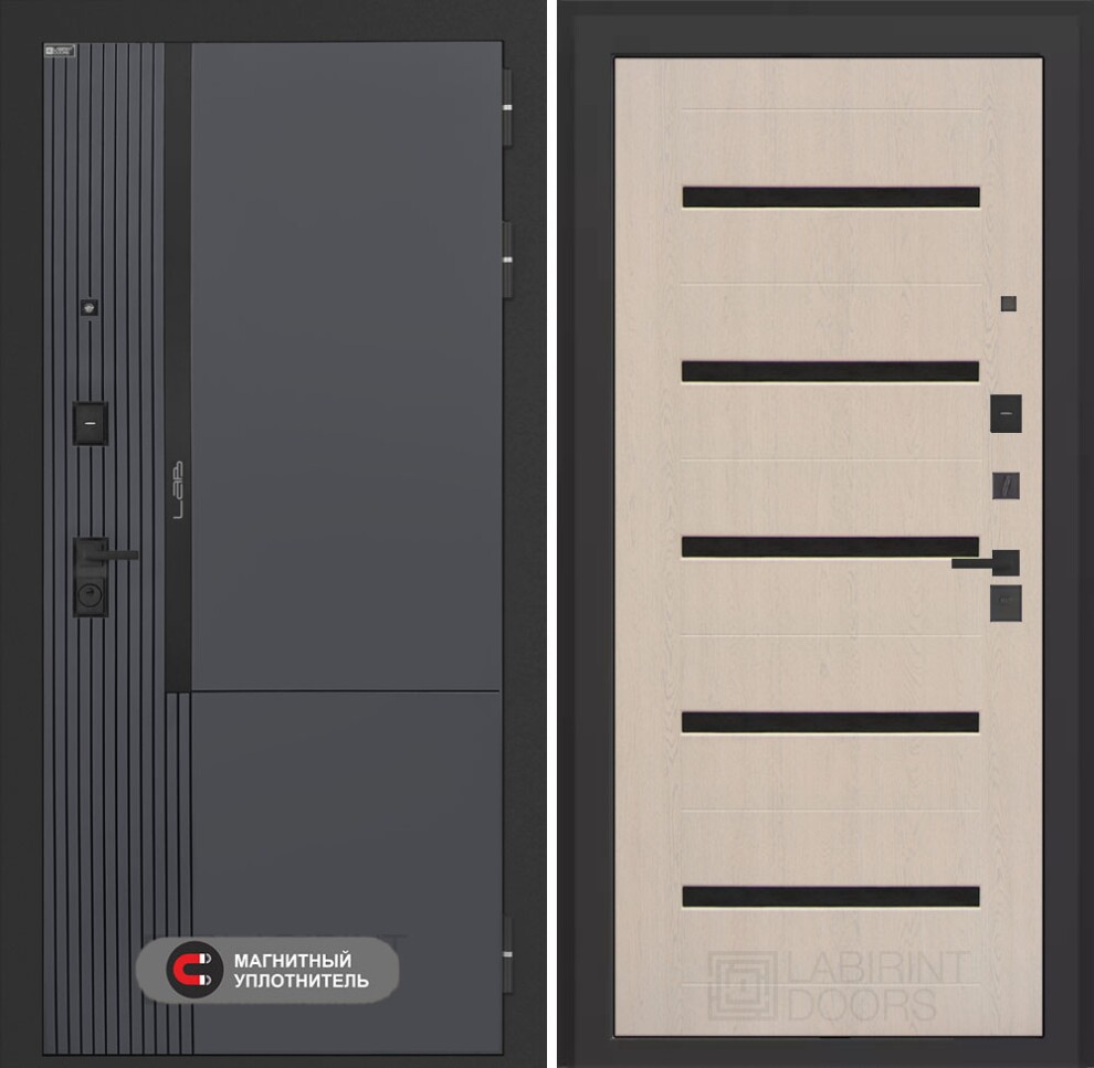 Входная дверь Лаб 2 Про 01 - Беленый дуб, стекло черное