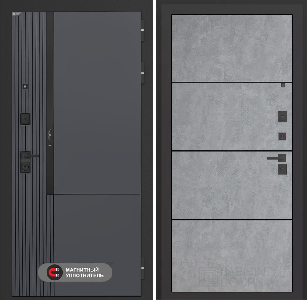 Входная дверь Лаб 2 Про 25 - Бетон светлый, черный молдинг
