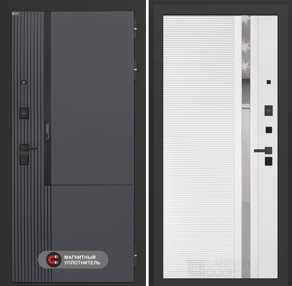 Входная дверь Лаб 2 Про 31 - Белый софт, зеркальная вставка с тонировкой