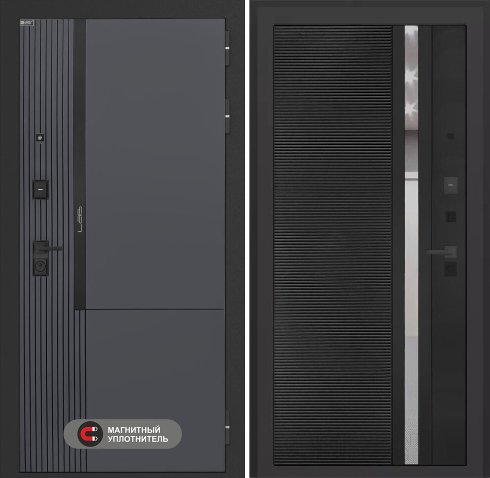 Входная дверь Лаб 2 Про 31 - Черный кварц, зеркальная вставка с тонировкой