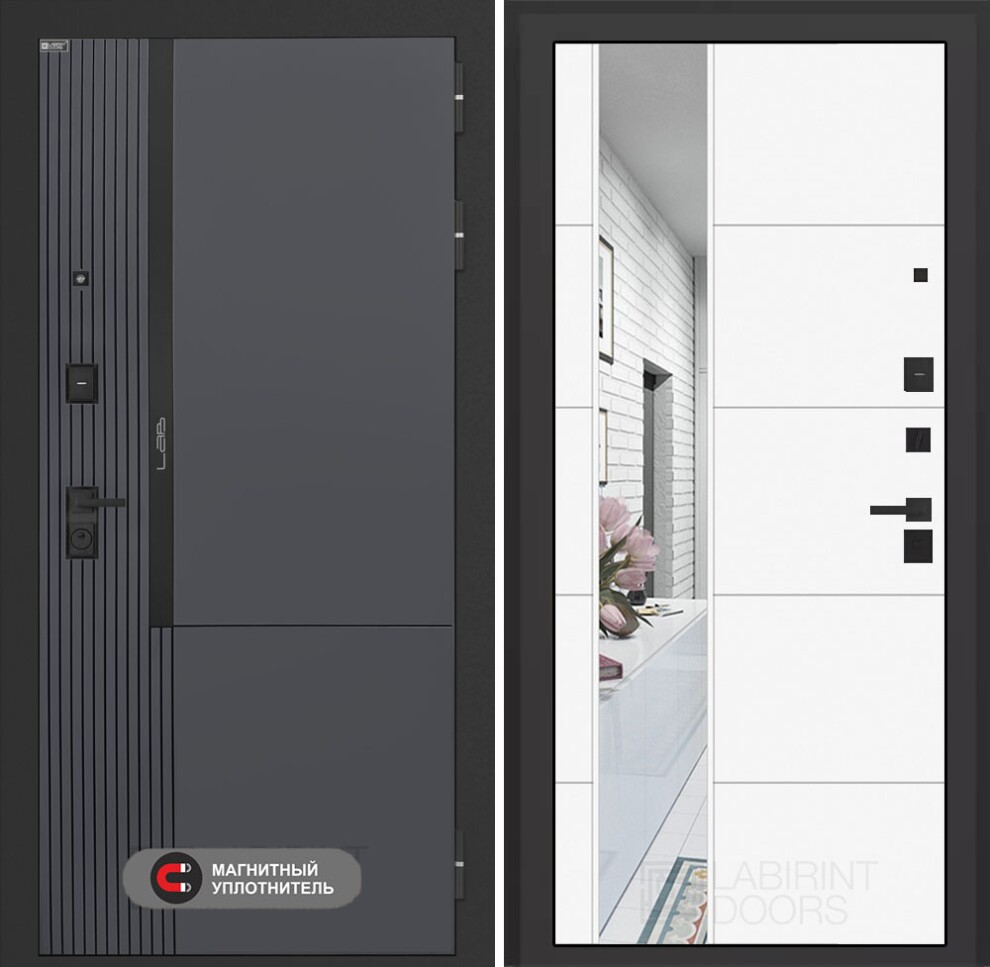 Входная дверь Лаб 2 Про с зеркалом 19 - Белый софт