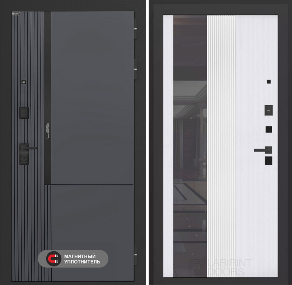 Входная дверь Лаб 2 Про с Зеркалом 32 тонированным - Белый рельеф софт