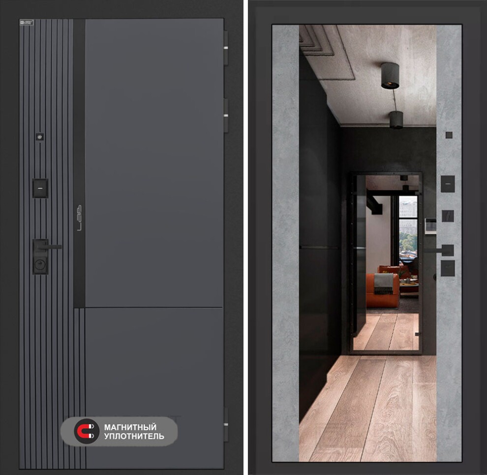 Входная дверь Лаб 2 Про с зеркалом Максимум - Бетон светлый