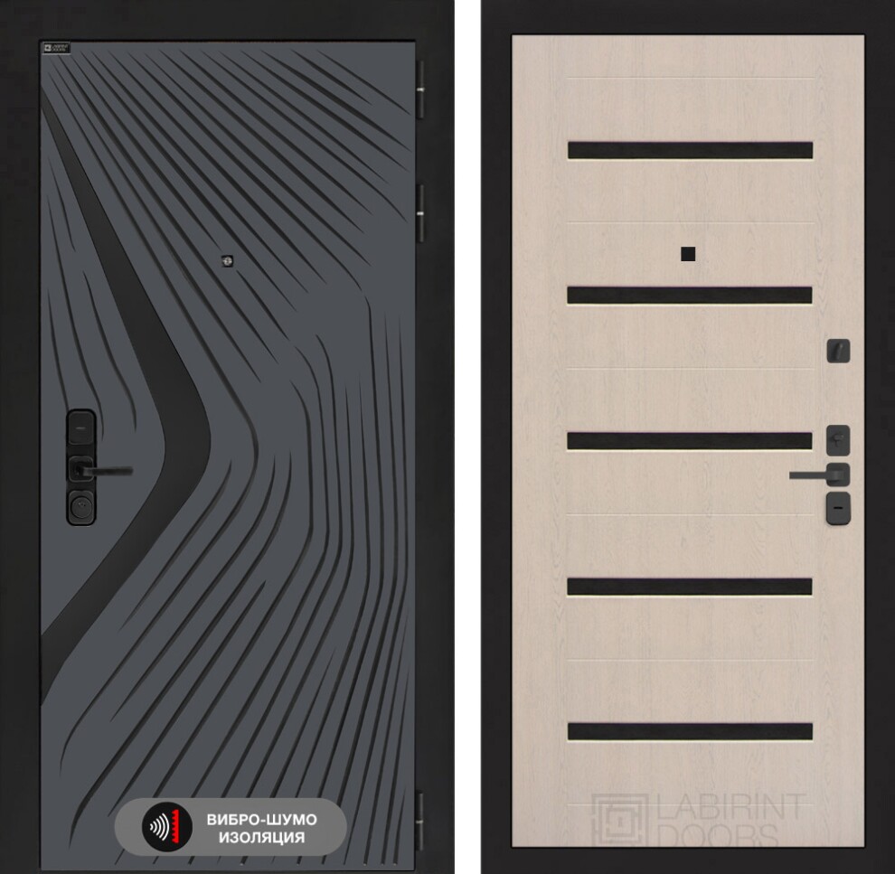 Входная дверь LEOLAB 01 - Беленый дуб, стекло черное