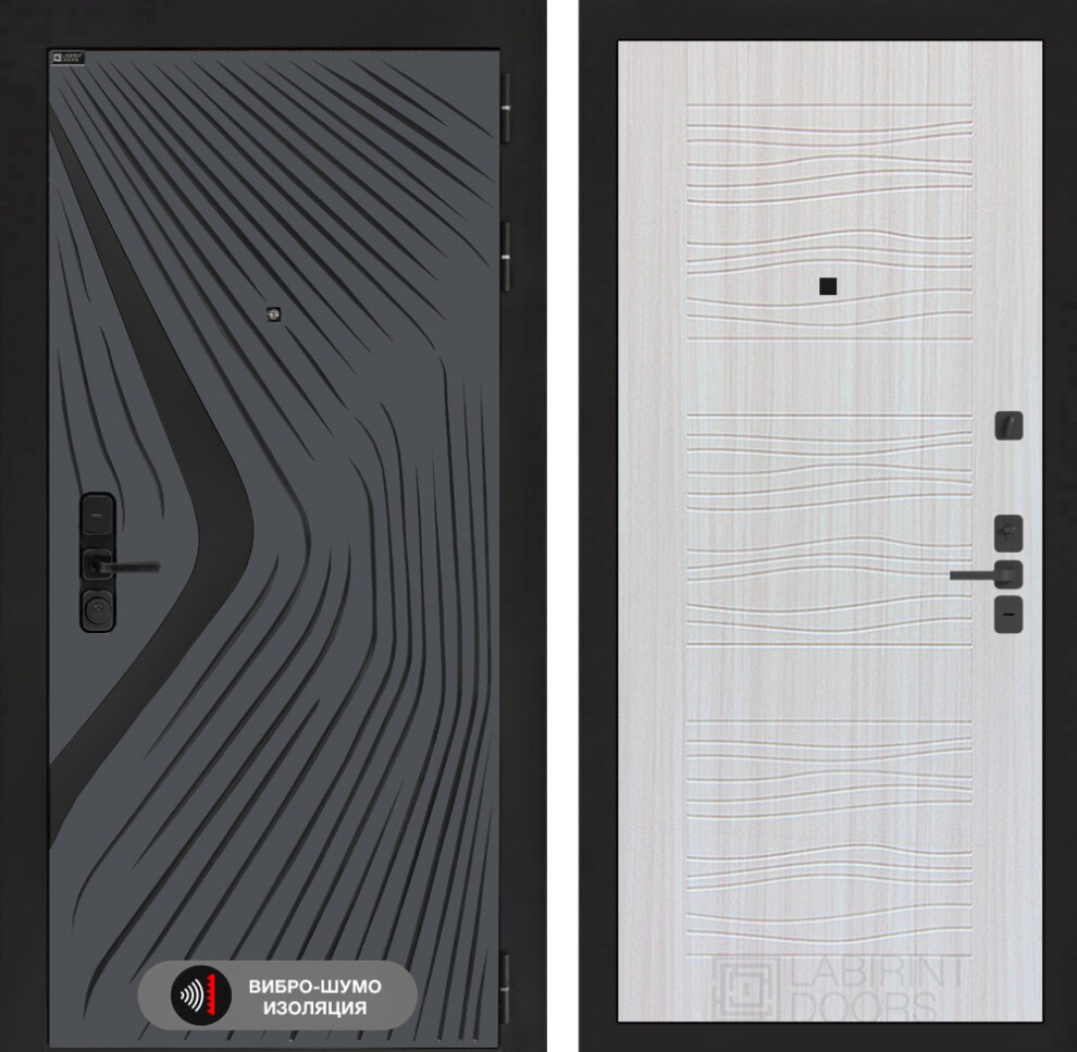 - Фурнитура в черном цвете: Броненакладка врезная, накладка со шторкой, глазок , дверная ручка, ночная задвижка. Цилиндр ключ-вертушка (производитель не регламентируется), регулируемый эксцентрик.
