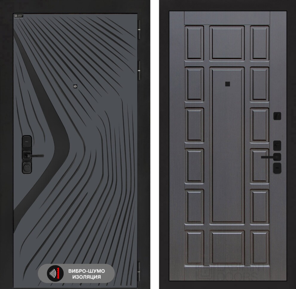 - Фурнитура в черном цвете: Броненакладка врезная, накладка со шторкой, глазок , дверная ручка, ночная задвижка. Цилиндр ключ-вертушка (производитель не регламентируется), регулируемый эксцентрик.