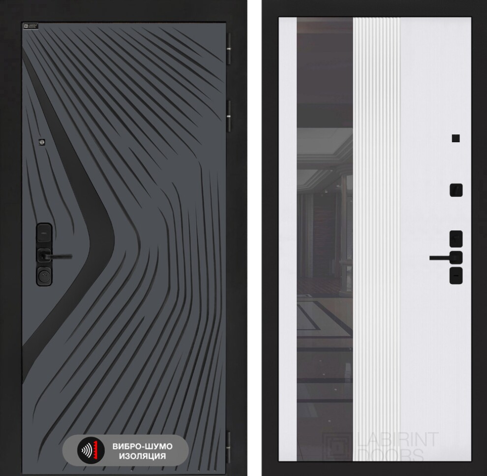 Входная дверь LEOLAB с Зеркалом 32 тонированным - Белый рельеф софт