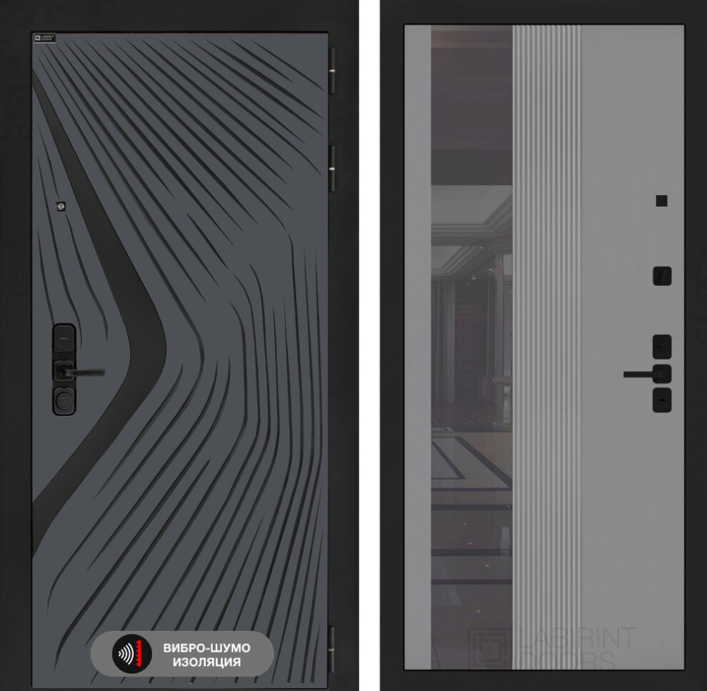 Входная дверь LEOLAB с Зеркалом 32 тонированным - Серый рельеф софт