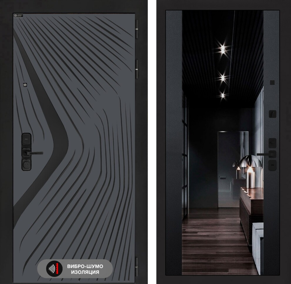 Входная дверь LEOLAB с Зеркалом тонированным Максимум - Черный кварц