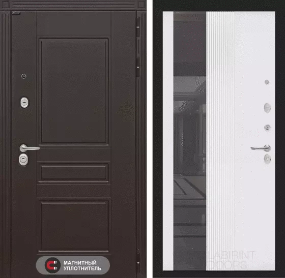 Входная дверь Мегаполис с Зеркалом 32 тонированным - Белый рельеф софт