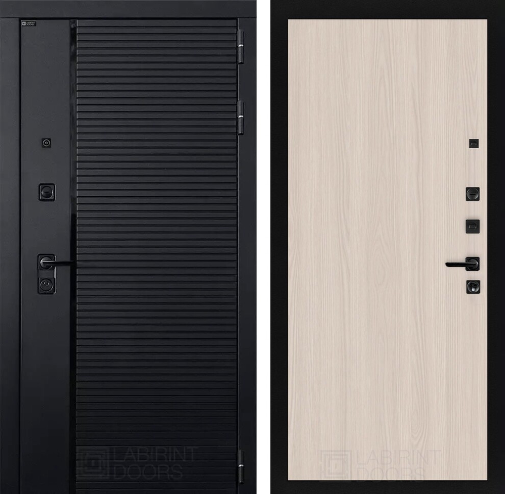 - Фурнитура в черном цвете: Броненакладка врезная, накладка со шторкой, глазок , дверная ручка, ночная задвижка. Цилиндр ключ-вертушка (производитель не регламентируется), регулируемый эксцентрик.