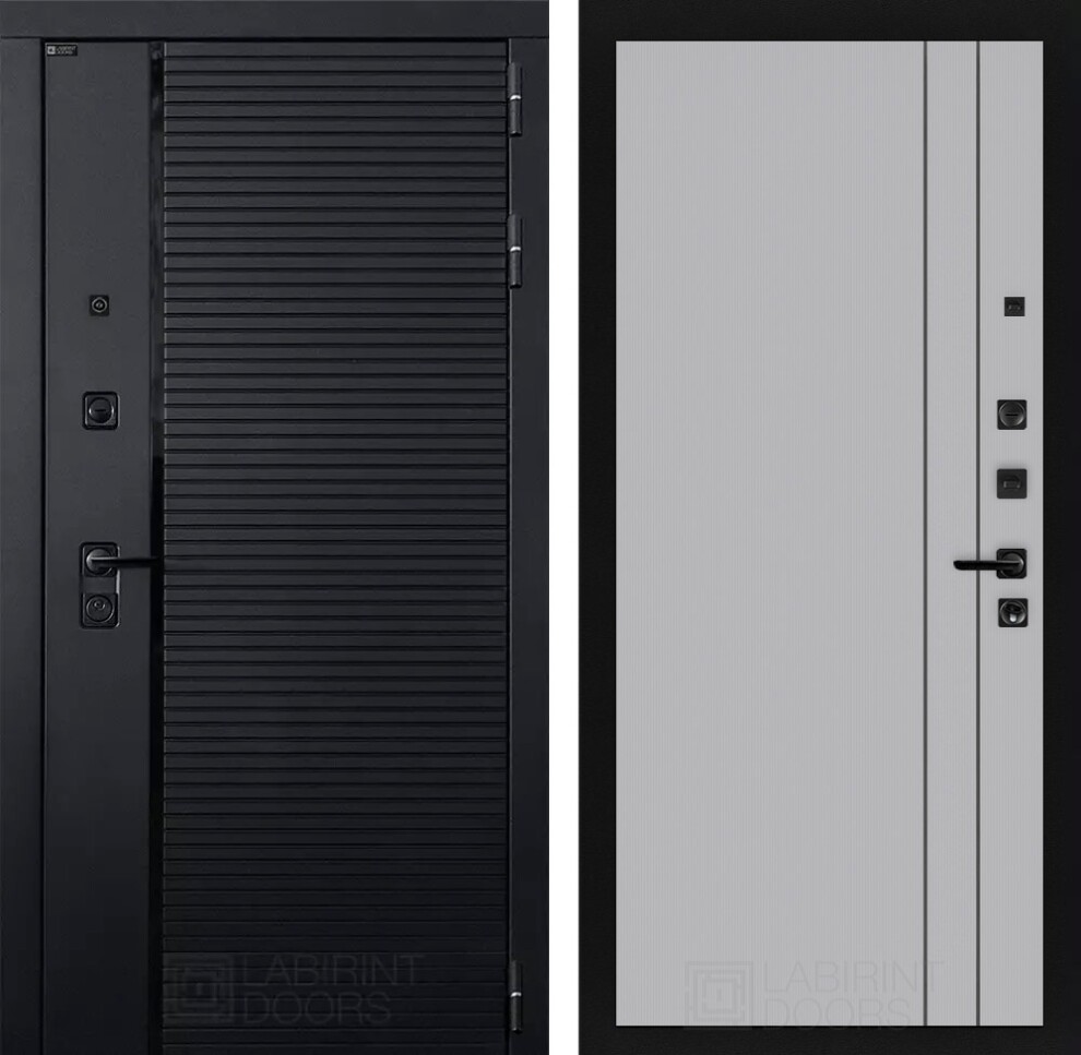 - Фурнитура в черном цвете: Броненакладка врезная, накладка со шторкой, глазок , дверная ручка, ночная задвижка. Цилиндр ключ-вертушка (производитель не регламентируется), регулируемый эксцентрик.