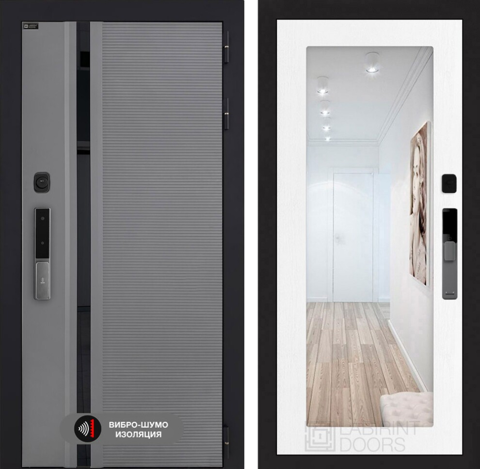 Входная дверь Пиано Смарт 2.0 с зеркалом 18 - Белое дерево