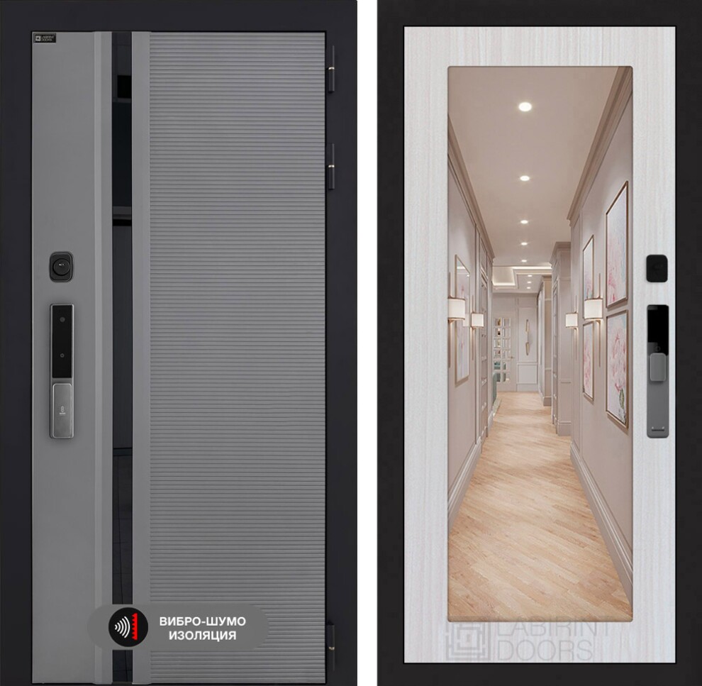 Входная дверь Пиано Смарт 2.0 с зеркалом 18 - Сандал белый