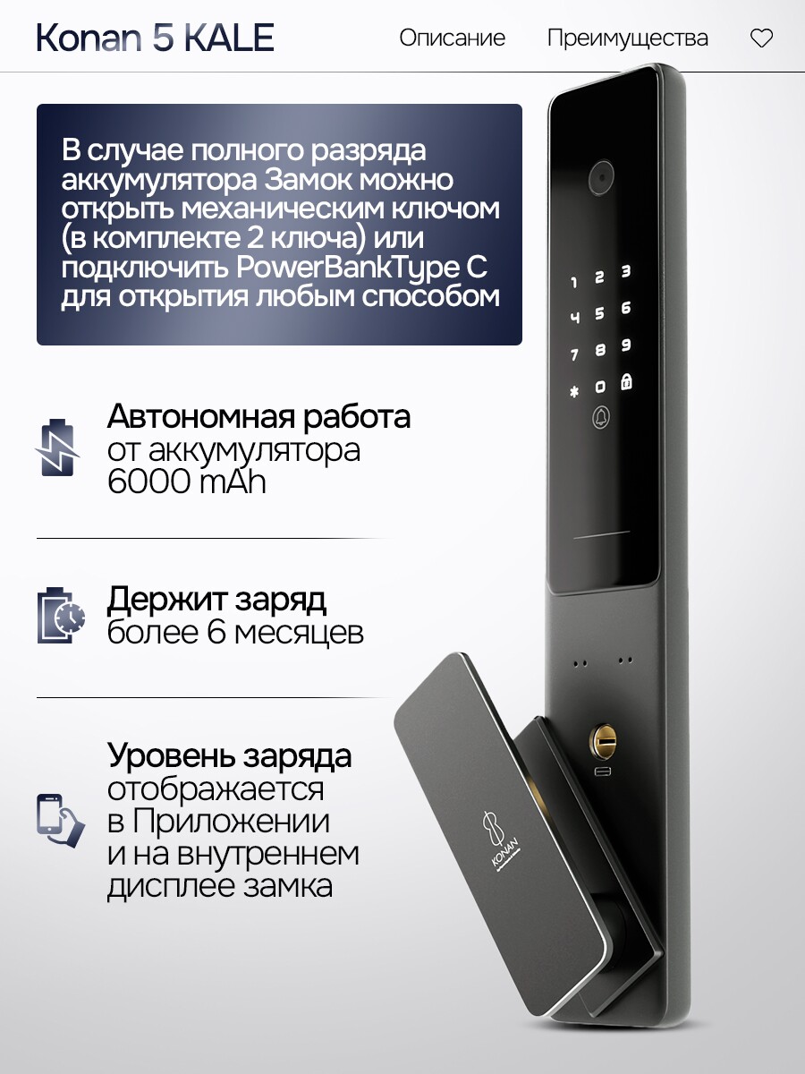 - Электронный замок Konan 5Kale (русифицированный) с Wi-Fi